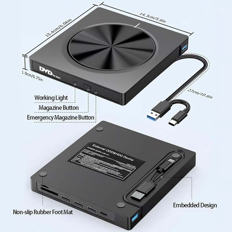 FAST PLUG & PLAY OPERATION: No drivers or software required—just plug it in and start burning, backing up, or watching DVDs/CDs instantly. Enjoy high-speed data transfer up to 5Gbps.